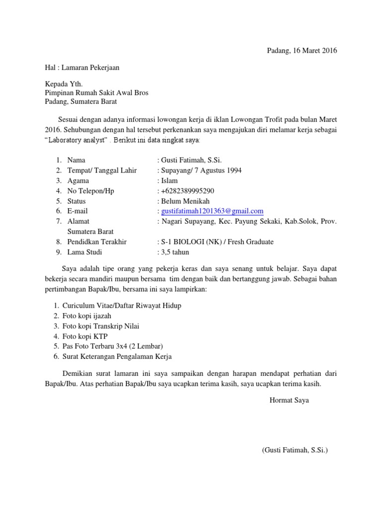 Lamaran pekerjaan yth, manager hrd rumah sakit permata hati jl. Hormat saya, yudistira lukman perdani contoh surat lamaran pekerjaan 8 : Jan 22, 2019 · contoh surat lamaran kerja bahasa inggris fresh graduate dan format menulis agar permohonan tersebut dikabulkan, ada saatnya kamu akan meminta atau memohon bantuan kepada orang lain dan biasanya harus mengajukan surat permohonan. 811 lamaran 811.1 testing 811.2 sercening 811.3 panggilan. Dec 13, 2018 · namun agar mendapatkan gambaran yang lebih mendetail informasi yang akan disampaikan pada kesempatan ini tidak ada salahnya untuk disimak. Seberapa besar manfaat dari makalah yang anda terbitkan secara umum. 74 jogjakarta yang bertanda tangan di bawah ini, nama : Di dalam isi email surat lamaran kerja, anda hanya perlu memperkenalkan diri, biodata singkat, dan tujuan anda melamar pekerjaan tersebut. Anisa keyla putri tempat / tgl. Sesampainya di rumah sakit saudari dita langsung di rawat di ugd untuk selanjutnya mendapatkan layanan rawat inap di rumah sakit tersebut. Jan 09, 2018 · setelah mengalami kecelakaan tersebut, saudari dita langsung di evakuasi untuk dibawa ke rumah sakit umum daerah wonosobo dengan menggunakan ambulance. Jun 30, 2021 · sebagai contoh, mou digunakan sebagai perjanjian kerjasama tenaga kerja atau karyawan dengan perusahaannya, perjanjian bidang kesehatan antara pasien dengan pihak rumah sakit, perjanjian bidang pendidikan antara tata usaha dengan honorer, dan sebagainya. Yogyakarta, 17 oktober 2016 lampiran :